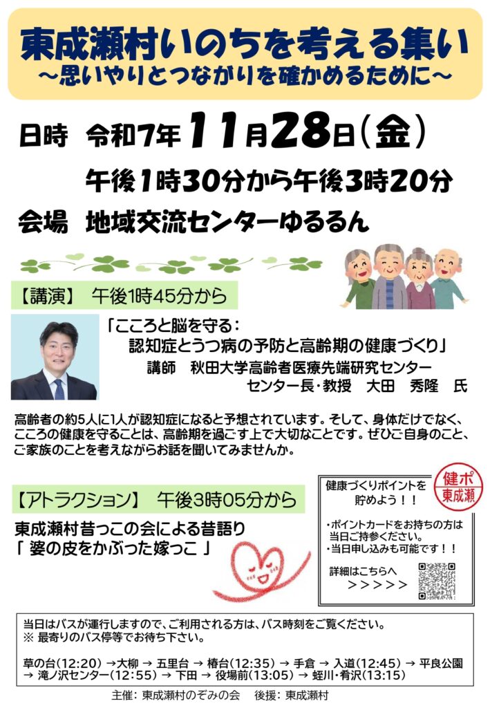 東成瀬村いのちを考える集い開催について